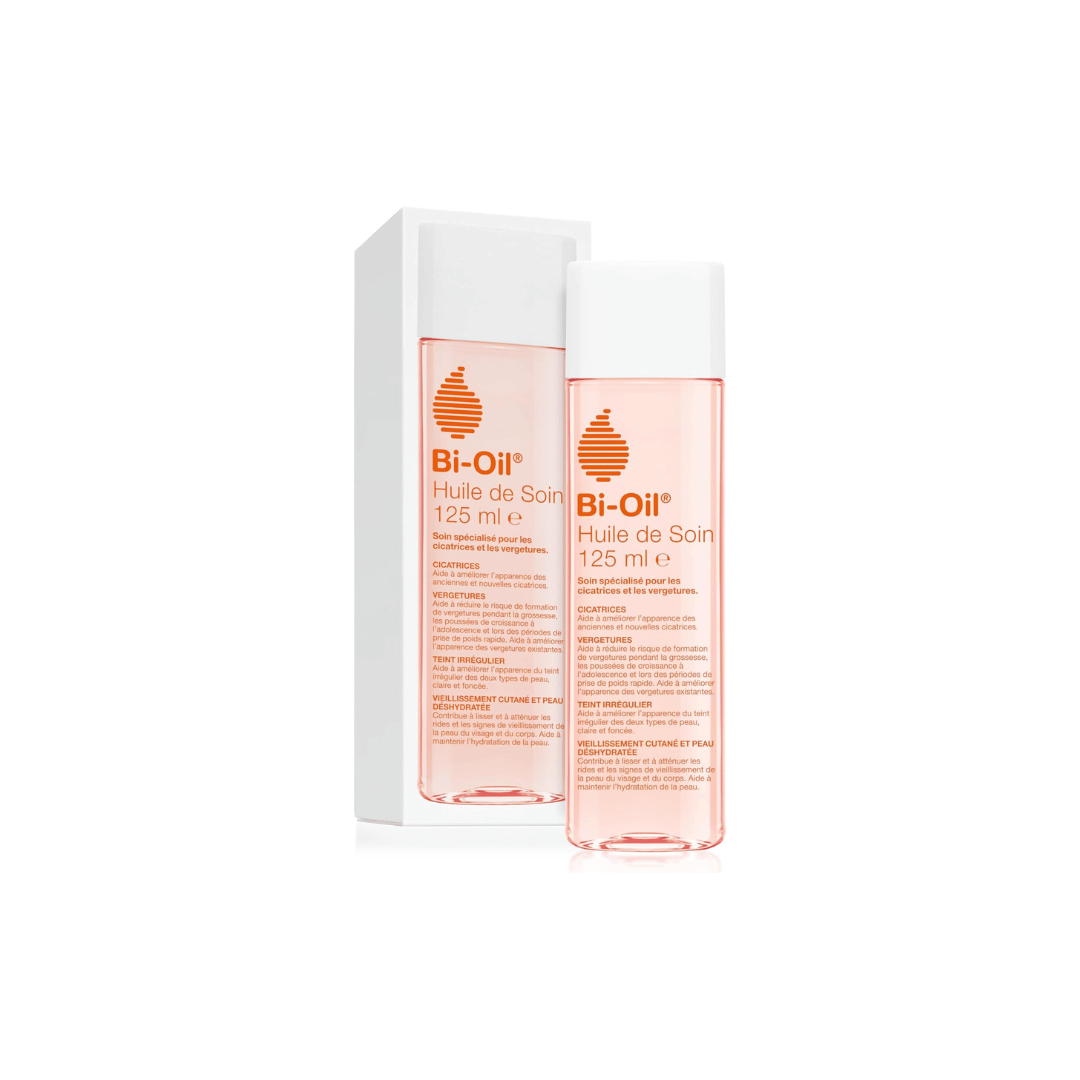 5. Bio-Oil – Soin vergetures et cicatrices Huile de soin Mélange d’huiles nourrissantes Vergetures installées ou post-grossesse Peaux sèches nécessitant massage et nutrition intense